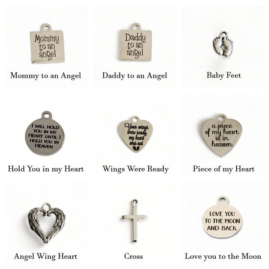Add one of our charms that reminds you the most of your loved one. Contact us if you are looking for something custom.